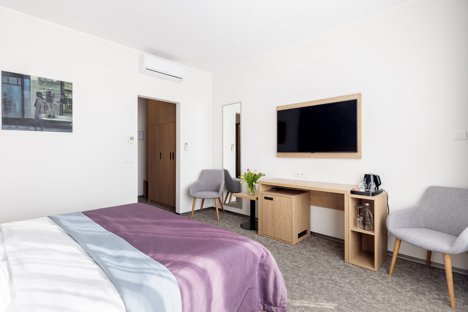 Pokoj s dvěma lůžky, s předsíní a koupelnou (sprchový kout, WC).